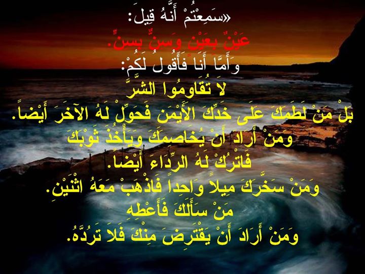عين بعين وسن بسن نشر على أرشيف الأقوال. شارك هذا الموضوع: شارك على فيس بوك (فتح في نافذة جديدة) فيس بوك المشاركة على X (فتح في نافذة جديدة) X المشاركة على WhatsApp (فتح في نافذة جديدة) WhatsApp أقوال مرتبطة الصفحة السابقة التالي